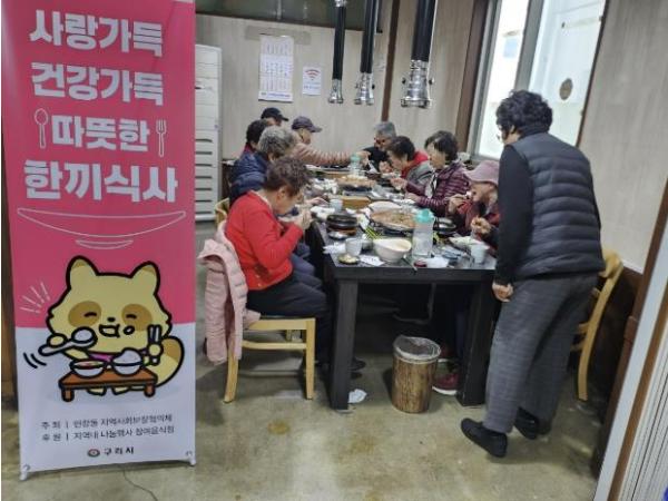 [한국뉴스타임=편집국] 구리시 인창동행정복지센터는 12일 정진식당이 가족 없이 외롭게 생활하시는 인창동 저소득 홀로 어르신 10명을 초대해 봄맞이 점심 식사를 무료로 제공하는 ‘사랑의 식사 대접’ 행사를 가졌다고 밝혔다.