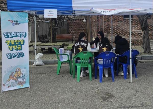 [한국뉴스타임=편집국] 포천시는 지난 12일 차의과학대학교에서 새 학기를 맞아 2025년 신입생 및 재학생을 대상으로 ‘전입대학생 생활안정 장학금’ 홍보 활동을 실시했다.