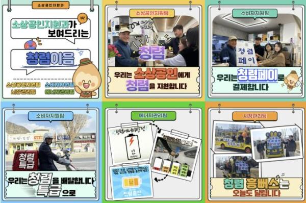 릴레이 첫 지목부서인 소상공인지원과는 ‘청렴’을 주제로 각 팀별 특성에 맞춰 ‘청렴페이’ ‘청렴 특급배달’ ‘청렴에너지 충전’ ‘청렴 흥뻐스’ 등으로 코믹화 한 포스터를 제작해 새올 게시판에 올렸다. 청평면의 경우 영화 ‘서울의 봄’을 패러디해서 부서에 답례품으로 배달된 ‘홍삼 박스’를 두고 갈등하는 모습을 극화해서 유머러스하게 담았다.