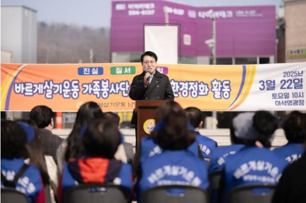 [한국뉴스타임=편집국] 조성대 남양주시의회 의장은 22일 이석영 광장에서 열린 2025 바르게살기운동 가족봉사단 봄맞이 환경 정화 행사에 참석했다.