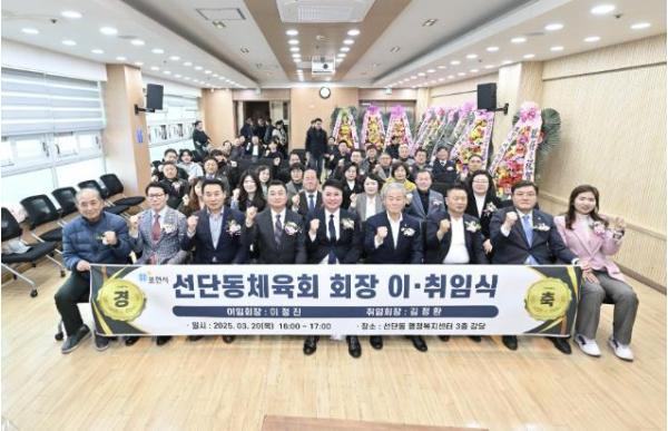 이정진 이임 회장은 “그동안 함께 해주신 모든 분께 감사드린다. 앞으로도 선단동 체육회의 발전을 응원하겠다”고 말했다. 김정환 신임 회장은 “이정진 회장의 노고에 감사의 인사를 전한다. 앞으로 선단동 주민의 건강을 증진하고, 체육 활성화에 최선을 다하겠다”고 포부를 밝혔다.