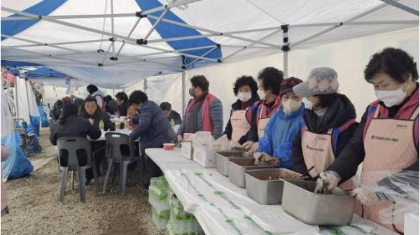 [한국뉴스타임=편집국] 한국생활개선포천시연합회가 공군 전투기 오폭 사고 피해 현장에서 피해 주민과 자원봉사자를 위한 급식 봉사에 나섰다.