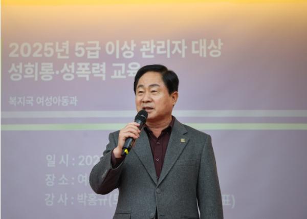 교육은 한국양성평등교육진흥원 위촉 강사인 박홍규 강사가 진행했으며, 리더십 관점에서 고위직 공무원의 성평등 인식 제고와 실천 방안을 중심으로 구성됐다.