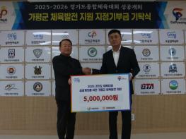 [한국뉴스타임=편집국] 가평군축산농협은 2025년 3월 26일 가평군체육회에 2025~2026 경기도종합체육대회의 성공적인 운영을 위하여 금5,000,000원의 기부금을 가평군체육회에 기탁했다.