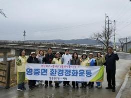정수경 주민자치회장을 비롯한 주민자치 위원과 영중면 행정복지센터 직원 등 20여 명이 참여했다. 참여자들은 하천변과 산책로에 방치된 쓰레기를 집중 수거하며 지역 환경 개선에 힘을 보탰다.