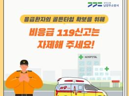 [한국뉴스타임=편집국] 남양주소방서는 응급환자의 골든타임 확보를 위해 시민들에게 비응급환자들의 119신고를 자제해 줄 것을 당부하고 있다.