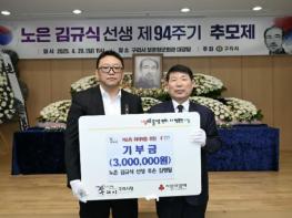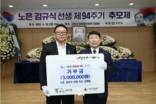 [한국뉴스타임=편집국] 구리시는 지난 20일 구리시 출신 독립 유공자인 ‘노은(蘆隱) 김규식(金奎植) 선생’의 후손으로부터 지역 내 저소득 취약계층을 위한 기부금 300만 원을 전달받았다.