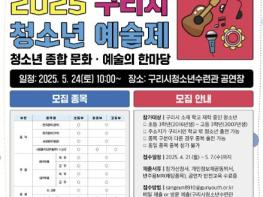 [한국뉴스타임=편집국] 구리시청소년재단 청소년수련관은 ‘2025년 구리시 청소년 예술제’에 참가하여 문화ㆍ예술 분야에서 재능을 펼칠 청소년을 4월 21일부터 5월 7일까지 모집한다.