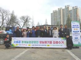이날 활동에는 소흘읍 남녀 농업경영인회, 마을 이장, 소흘농협 등 관계자가 함께 참여해 관내 농지에 방치된 폐비닐 등 약 12톤의 영농폐기물을 수거했다. 수거된 영농폐기물은 한국환경공단으로 이송돼 재활용 자원으로 활용될 예정이다.