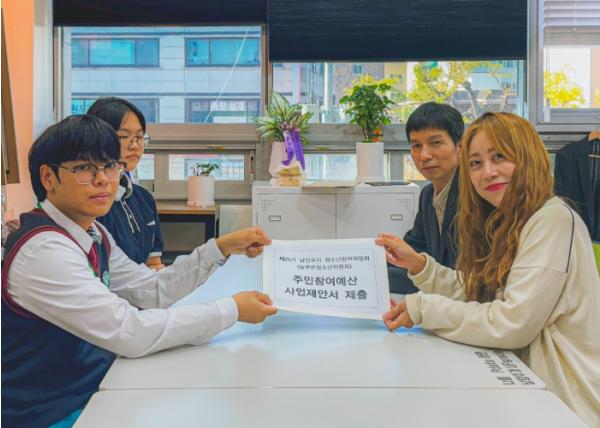 [한국뉴스타임=편집국] 남양주시는 지난 30일, 늘푸른청소년위원회가 청소년의 안전과 권익 향상을 위해 ‘안전한 귀갓길 만들기’ 사업을 주민참여예산으로 제안하고 시 예산과에 제안서를 제출했다고 밝혔다.