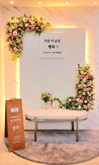 포토존은 ‘지금 이순간 행복’이라는 테마로 구성됐으며, 은은한 조명과 화사한 꽃 장식이 어우러진 산뜻한 화이트 톤 배경으로 꾸며져 있어 누구나 편안하게 촬영할 수 있도록 조성됐다.