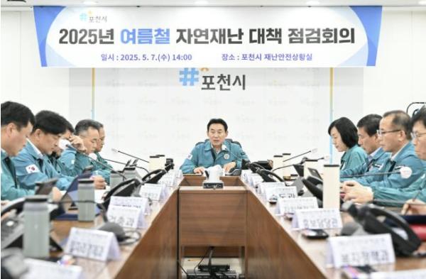 [한국뉴스타임=편집국] 포천시는 지난 7일 시청 재난안전상황실에서 시장, 부시장, 13개 협업부서장 등 24명이 참석한 가운데, 여름철 자연재난 대비 점검회의를 열고 인명피해 우려지역(자연재해위험개선지구) 현장을 점검했다.