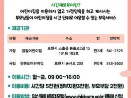 [한국뉴스타임=편집국] 포천시는 오는 6월부터 ‘시간제보육 통합반’을 처음으로 도입하고, 다양한 양육 수요에 부응하는 촘촘한 보육 환경 조성에 나선다.