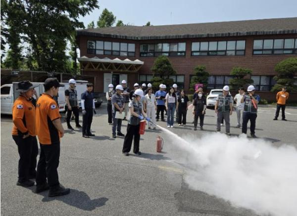 훈련은 실제 상황을 가정한 지진 및 화재 발생 시 대처 요령 교육, 상황 전파 및 대피 모의훈련, 소화기 사용법 교육 및 분사 체험 순으로 진행됐다.