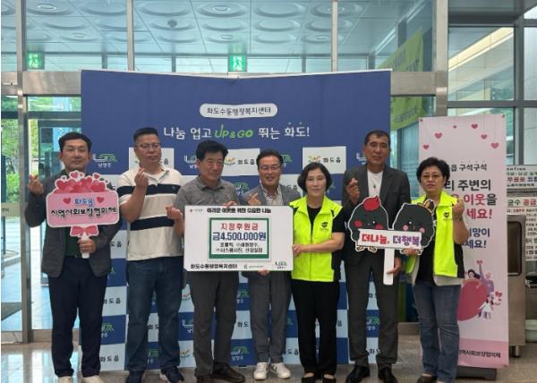 [한국뉴스타임=편집국] 남양주시 화도수동행정복지센터는 24일 화도읍 소재 기업인들이 소외된 이웃을 돕기 위해 후원금 450만 원을 화도읍 지역사회보장협의체에 전달했다고 밝혔다.