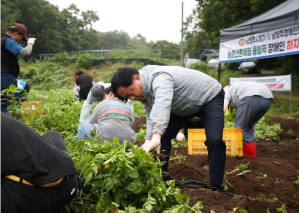 [한국뉴스타임=편집국] 남양주시는 26일, 남양주시장애인단체연합회가 주최하고, (사)해밝음장애인복지회가 주관한 장애인 치유농업 하지감자 캐기 체험이 성황리 개최됐다고 밝혔다.