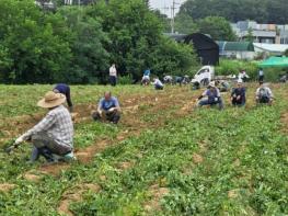 [한국뉴스타임=편집국] 남양주시는 지난 26일 와부읍 농촌지도자회가 40여 명의 회원들이 공동으로 운영하는 도곡리 888 일원에서 감자(10kg) 100박스를 수확했다고 밝혔다.