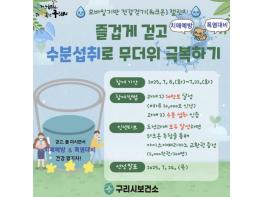 [한국뉴스타임=편집국] 구리시는 여름철 폭염에 대비하여 시민들의 온열질환을 예방하고 신체활동을 증진하기 위한 ‘즐겁게 걷고 수분 섭취로 무더위 극복하기’ 걷기 챌린지를 오는 8일부터 22일까지 15일간 운영한다고 밝혔다.