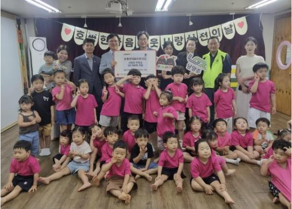 이번 후원은 어린이집 원아들과 학부모가 직접 참여한 바자회 활동을 통해 십시일반 모은 수익금을 관내 취약계층을 위해 사용하겠다는 뜻에서 마련됐다.