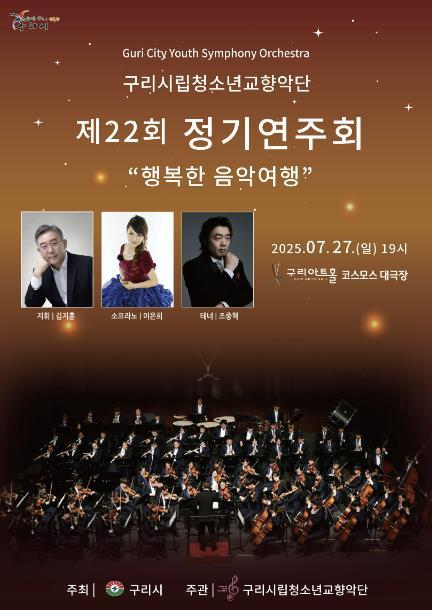 [한국뉴스타임=편집국] 구리시는 7월 27일 오후 7시 구리아트홀 코스모스 대극장에서 제22회 구리시립청소년교향악단 정기연주회를 개최한다.