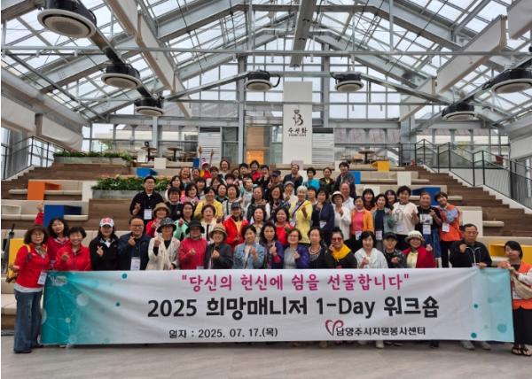 [한국뉴스타임=편집국] 남양주시자원봉사센터는 7월 17일, 지역사회를 위해 헌신해 온 희망매니저 70명을 대상으로 ‘2025 희망매니저 힐링 워크숍’을 개최했다.