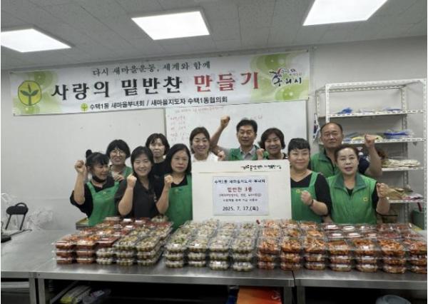 [한국뉴스타임=편집국] 구리시 수택1동 행정복지센터은 지난 17일 수택1동 새마을지도자협의회 및 부녀회로부터 관내 취약계층을 위한 ‘사랑의 밑반찬’을 이웃돕기 후원품으로 전달받았다.