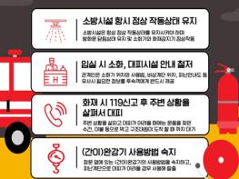 이번에 안내된 주요 안전수칙은 ▲소방시설 정상 작동상태 유지 ▲입실 시 소화기와 비상계단 등 대피시설 위치 확인 ▲화재 발생 시 119 신고 후 주변 상황을 살펴 대피 ▲(간이)완강기 사용법 숙지 ▲대피요령 철저 준수 등이다.