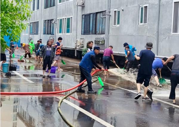 이날 단원 및 센터 직원 50여 명은 침수 피해가 발생한 연립주택 현장에 투입돼 배수 작업과 토사 제거 등 복구 작업을 신속히 마무리했다.
