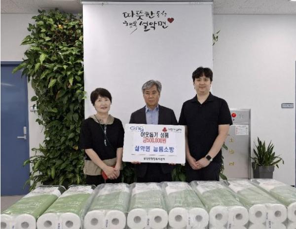[한국뉴스타임=편집국] 가평군 설악면 늘품소방 김영호 대표는 22일 설악면행정복지센터를 찾아 관내 호우 피해 가정을 위한 후원 물품으로 50만원 상당의 휴지를 기탁했다. 이 물품은 최근 지급된 민생회복 소비쿠폰을 활용해 직접 구입한 것이다.