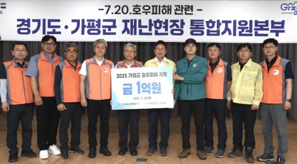 이날 전달식은 경기도와 가평군이 함께 운영 중인 재난현장 통합지원본부에서 열렸으며, 김동철 한국전력공사 사장이 직접 방문해 지원금을 전했다.