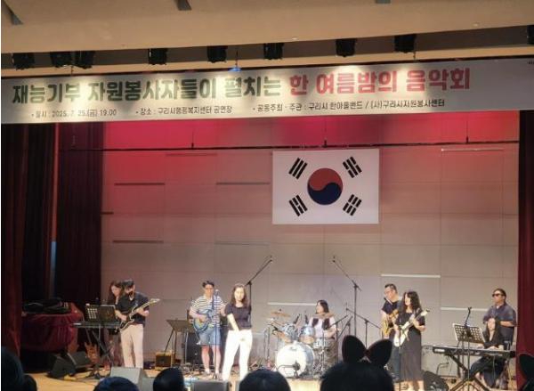 [한국뉴스타임=편집국] 사단법인 구리시자원봉사센터는 지난 7월 25일 구리시행정복지센터 1층 공연장에서 재능기부 자원봉사자들이 펼치는 ‘한 여름밤의 음악회’를 개최했다.