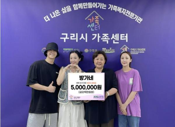 [한국뉴스타임=편집국] 구리시는 지난 7월 25일, 삼 남매 유튜브 ‘방가네’의 운영자인 방효선·고은아·미르 씨가 구리시가족센터를 방문해 미혼모, 취약·위기 가족을 위해 후원금 500만 원을 전달했다고 밝혔다.