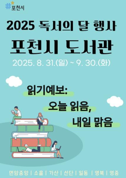 [한국뉴스타임=편집국] 포천시 도서관은 오는 9월 독서의 달을 맞아 7개 도서관에서 다채로운 독서문화프로그램을 운영한다.