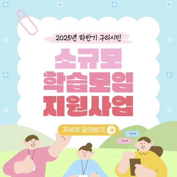 [한국뉴스타임=편집국] 구리시는 생활 속 평생학습 문화를 조성하기 위해 ‘2025년 하반기 소규모 학습모임 지원사업’ 참여 학습모임을 모집한다.