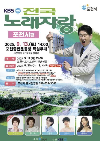 [한국뉴스타임=편집국] 포천시는 오는 9월 13일 포천종합운동장 특설무대에서 ‘KBS 전국노래자랑 포천시편’을 개최한다.
