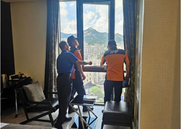주요 내용으로는 ▲노후 전기제품(배선)의 화재 위험성과 정격 용량 제품 사용 권고 ▲취사 기기 등 화기 취급 시 안전사용 요령 및 초기 진압 교육 ▲화재 대피요령과 피난로 확보 방안 안내 ▲객실 내 (간이)완강기 사용법 교육과 비치 상태 점검 ▲고가(굴절) 차량 접근 위치 확인 및 공기안전매트 전개 조건 확인 등이 중점적으로 이뤄졌다.