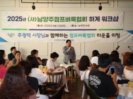 [한국뉴스타임=편집국] 남양주시는 23일 와부읍 늘푸른정원에서 ㈔남양주점프벼룩협회와 함께 ‘2025년 남양주점프벼룩협회 워크숍’과 ‘타운홀미팅’을 개최했다고 밝혔다.