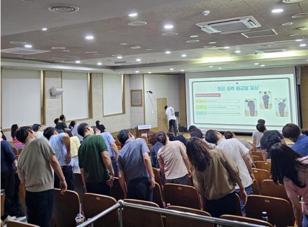 이번 교육은 관리감독자의 안전·보건 관리 전문성을 높여 산업재해를 사전에 예방하기 위한 것으로, 위험성 평가, 실무 사례 및 법령 해설, 근골격계 질환 예방 및 관리, 현업근로자와의 소통 및 강의 역량 배양 등을 중심으로 진행했다.