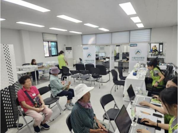 서울아산병원 가정의학과와 호흡기내과 전문의를 포함한 14명의 의료진이 참여해 어르신들을 대상으로 혈압·혈당 측정 등 기초 건강검진과 소변검사, 심전도검사, 엑스레이(X-ray) 촬영 등을 진행했다. 검사 결과에 따라 약 처방과 영양제 투여 등 맞춤형 진료도 제공했다.