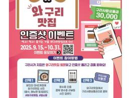 이번 이벤트는 구리시 대표 맛집을 시민이 직접 즐기고 홍보할 수 있도록 기획된 것으로, 소상공인 매출 증대와 지역경제 활성화를 도모하기 위해 마련됐다.
