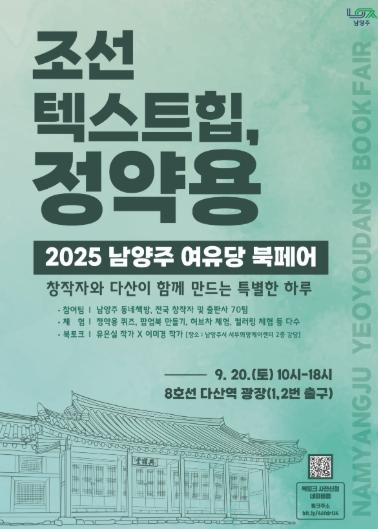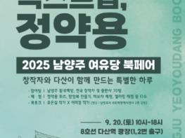 [한국뉴스타임=편집국] 남양주시는 독서의 달을 맞아 20일 다산역 광장에서 시민과 함께하는 독서문화축제 ‘2025 남양주 여유당 북페어’를 개최한다.
