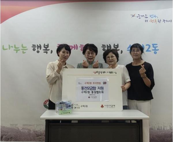 [한국뉴스타임=편집국] 구리시 수택2동 행정복지센터는 9월 12일 수택2동 통장협의회로부터 추석 명절을 맞아 지역 내 취약계층을 위한 동전 모금 성금을 기탁받았다고 밝혔다.