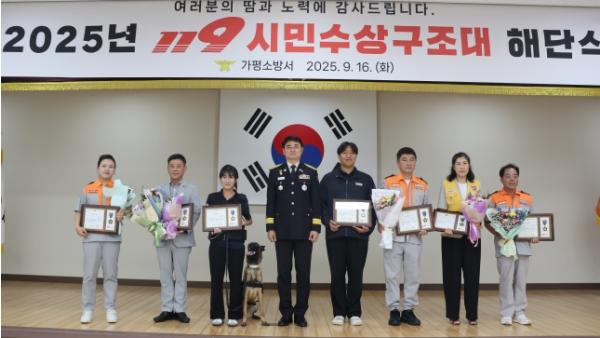 [한국뉴스타임=편집국] 가평소방서가 여름철 가평군 물놀이 안전을 위해 활동한 119시민수상구조대의 노고를 기리며 해단식을 개최했다.