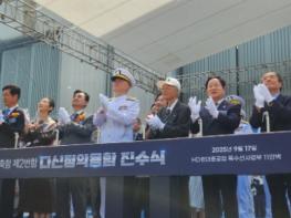 [한국뉴스타임=편집국] 주광덕 남양주시장은 17일 울산 HD현대중공업 조선소에서 열린 차세대 이지스 구축함 ‘다산정약용함’ 진수식에 참석했다. ‘다산정약용함’은 정조대왕급(KDX-Ⅲ Batch-Ⅱ) 2번함으로, 첨단 전투체계를 갖춘 대형 해군 구축함이다.