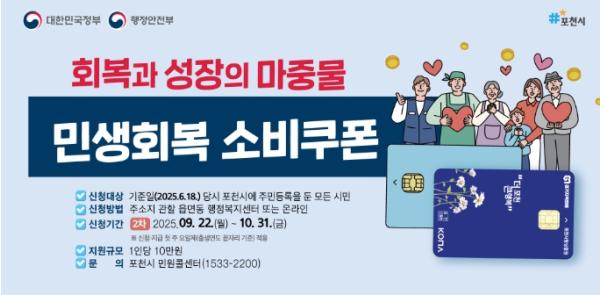 포천시 관계자는 “소비쿠폰이 시민 생활 안정과 지역 상권 활성화에 도움이 되길 바란다”며 “기한 내 신청과 사용을 부탁드린다”고 말했다.