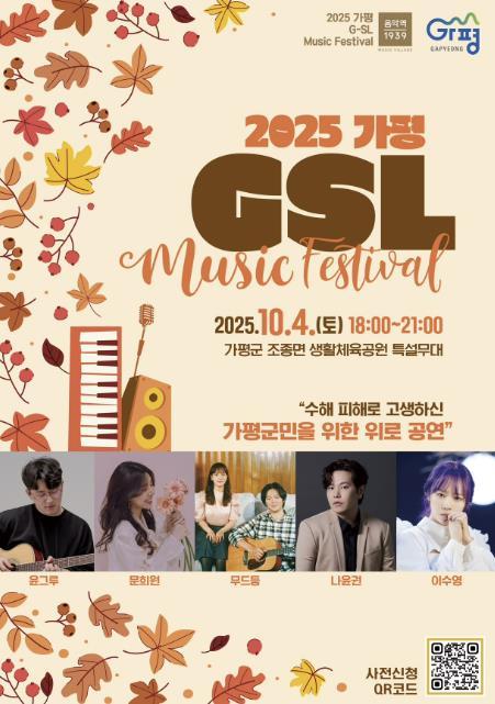 [한국뉴스타임=편집국] 가평군은 오는 10월 4일, 토요일 조종면 생활체육공원에서 ‘2025 가평 G-SL’ 뮤직페스티벌 공연을 개최한다. 올해 네 번째 G-SL 무대인 10월 뮤직페스티벌은 지난 여름 집중호우로 인한 피해로 지치고 고생한 군민들에게 위로와 희망의 메시지를 전하기 위해 조종생활체육공원 특설무대에서 열린다.