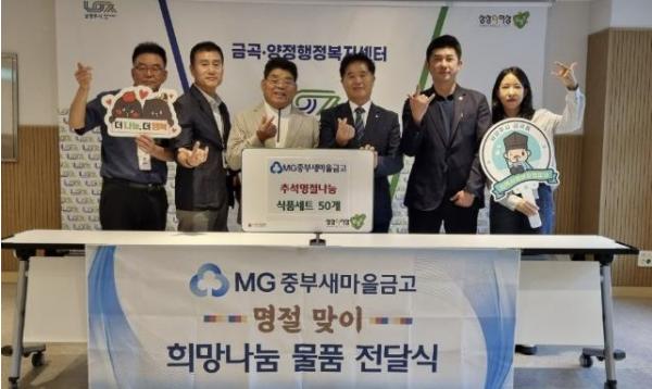 MG중부새마을금고는 해바라기유, 부침가루 등 명절에 필요한 물품으로 구성된 선물세트를 준비했다. 기탁된 선물세트는 금곡동지역사회보장협의체를 통해 관내 독거노인, 장애인, 한부모 등 취약계층 50가구에 전달될 예정이다.