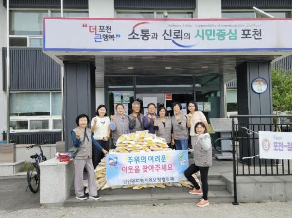 이날 행사에서 관인면지역사회보장협의체 회원들은 쌀 100포(170만 원 상당)를 구매하여 취약 가구 등 100가구에 전달하며 안부를 확인했다.