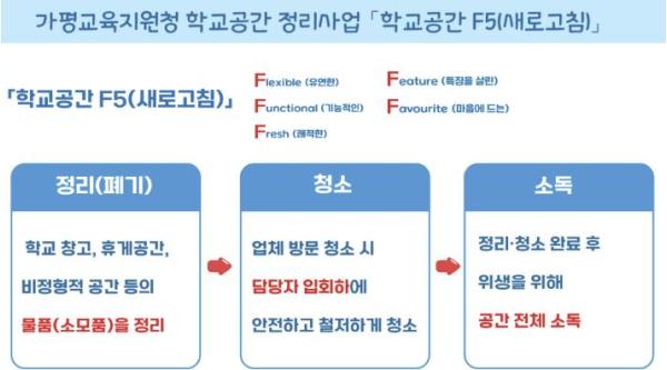 [한국뉴스타임=편집국] 경기도가평교육지원청은 교육청은 2025년 하반기 부터 학교공간 정리사업인 ‘학교공간 F5(새로고침)’을 시범 추진한다.