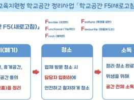 ‘학교공간 정리사업 F5(새로고침)’의 F5는 새로고침이라는 뜻도 있지만, Flexible(유연한), Functional(기능적인), Fresh(쾌적한), Feature(특색 있는), Favourite(선호하는)이라는 의미를 담고 있다.